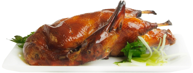 The end result? Just what our taste buds longed for. We painted our crepe-like Mandarin pancakes with our tangy, home-made hoisin sauce, then layered crispy duck skin, tender succulent meat, cool cucumber sticks and a mild biting scallion or two in the middle, then rolled the bottom up, tucked in the edges and rolled until we had Peking Duck as it should be.For the Duck