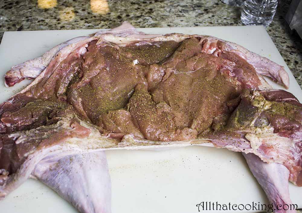 7. Rub the turducken with olive oil or room temperature butter. I used olive oil.