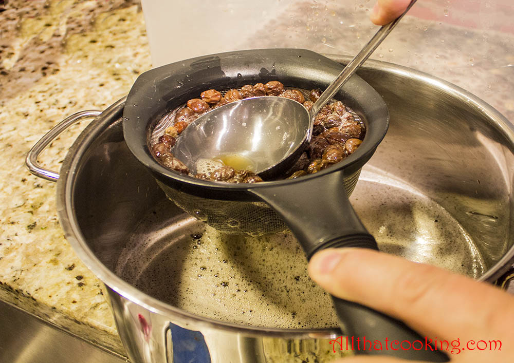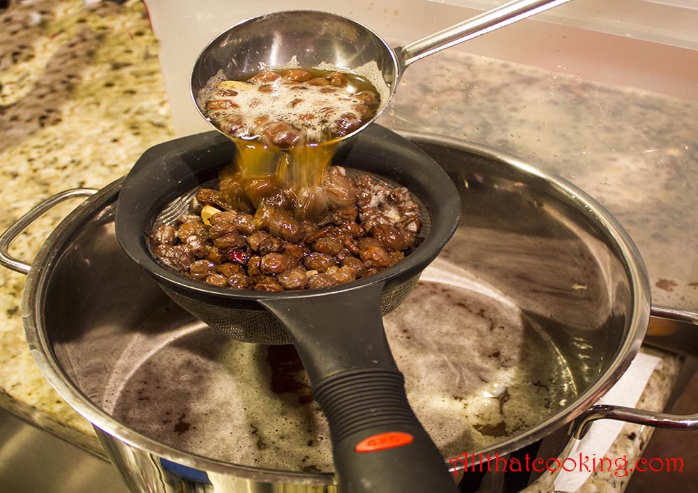 5.  After 3 weeks pour the liquid through a strainer, pressing all of the juices from the solid ingredients.