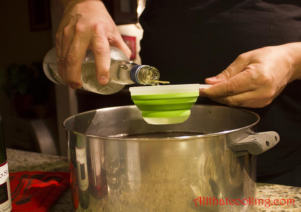 We happened to have a bottle of Polish vodka called Zubrowka in the freezer and that’s what we used.  You may know it as Bison Grass Vodka.  The blade of wild grass sticking out of the bottle in the picture above is what flavors this unique vodka.
