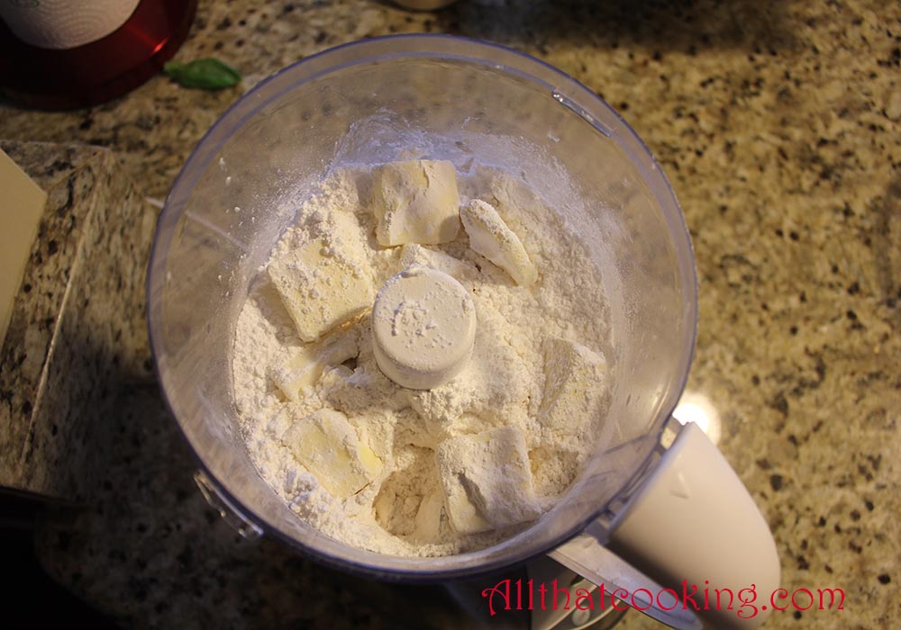 2. Combine flour, butter and salt in bowl of food processor. Process until well blended.