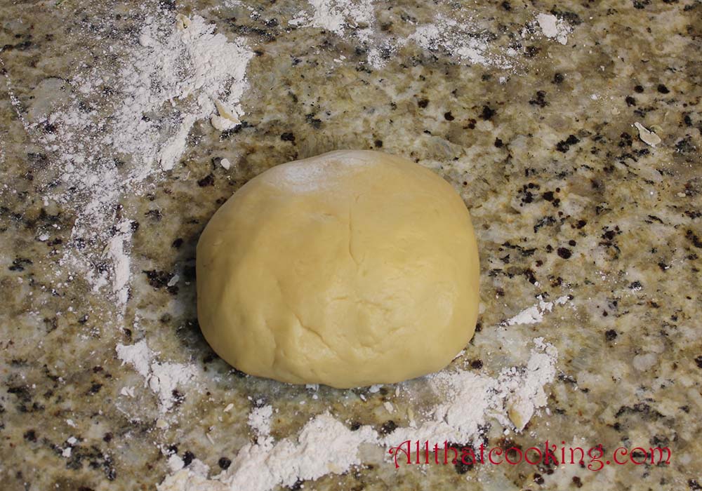 4. Turn out dough to a well floured work surface and knead until you form a large dough ball.