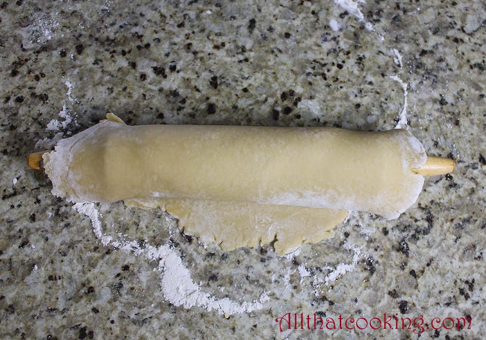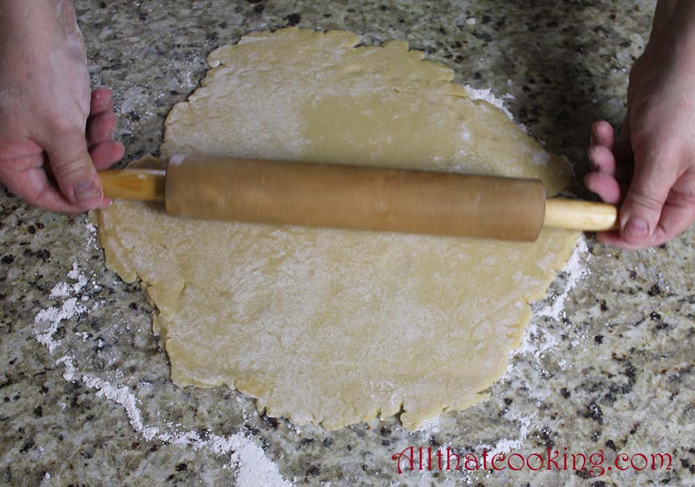 6. On a well floured work surface, roll out dough to about 1/4-inch thickness.