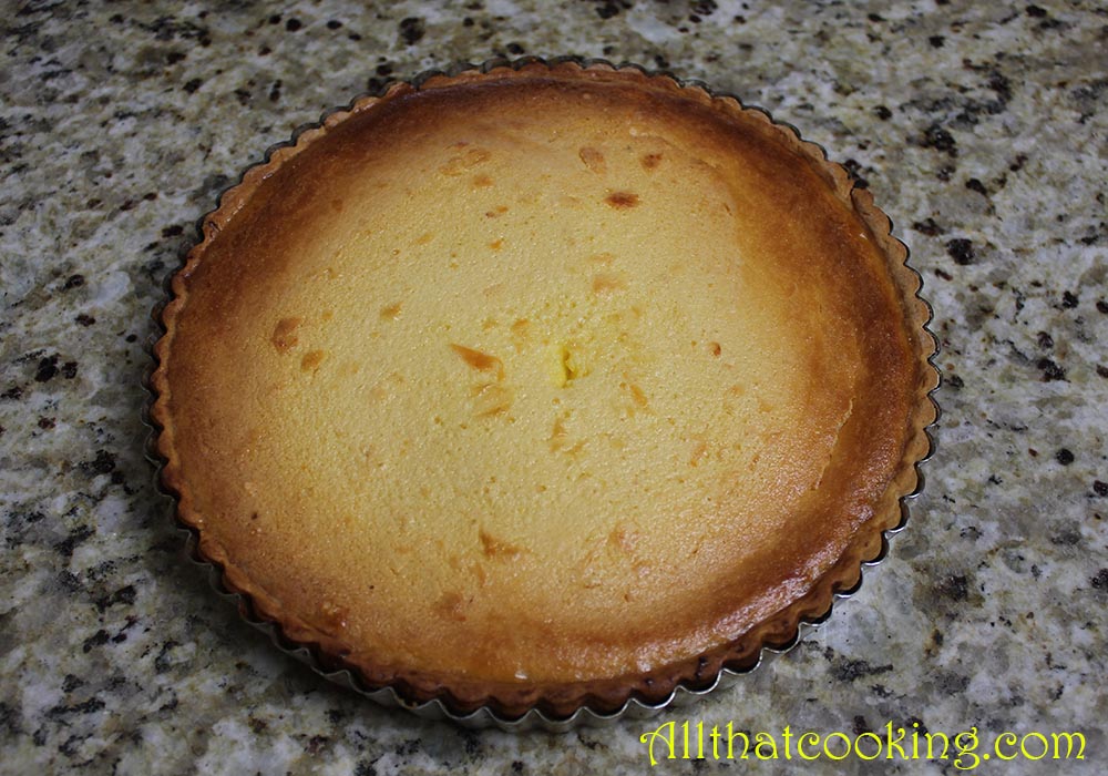 6. Remove tart from oven and let stand at least 3 hours before removing it from the tart pan.  In the meantime, make the candied lemon peel.