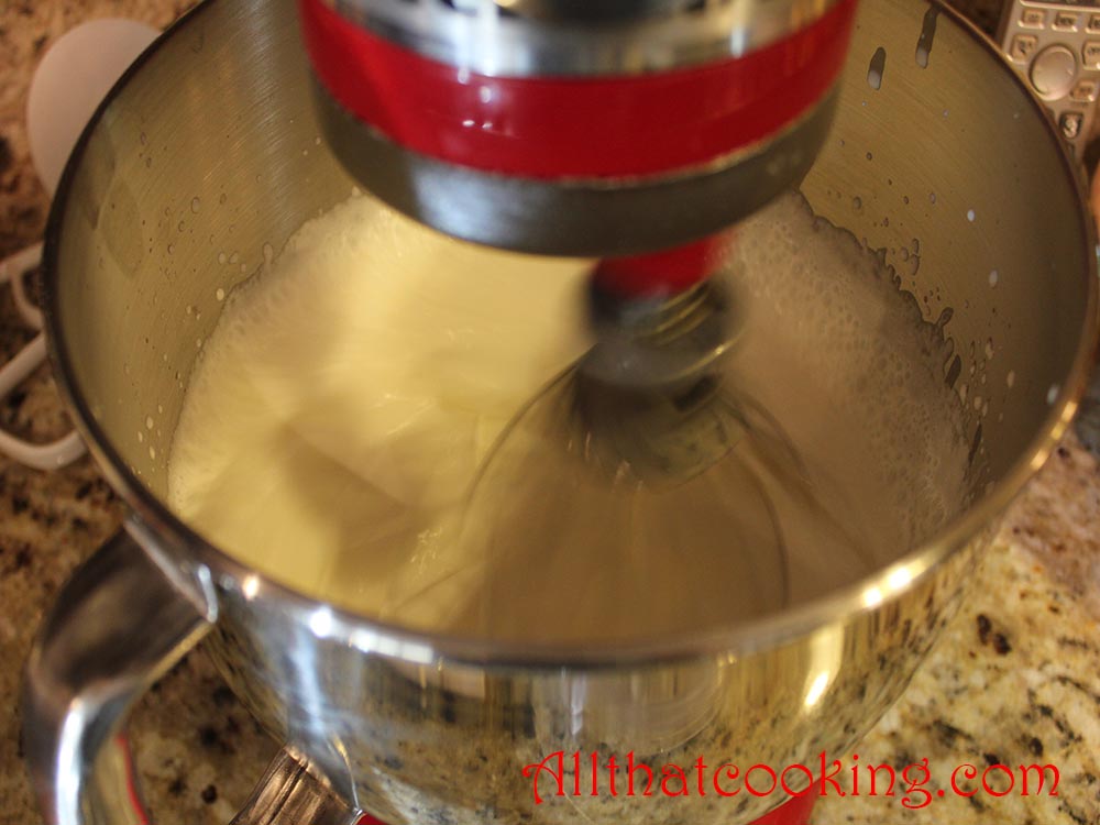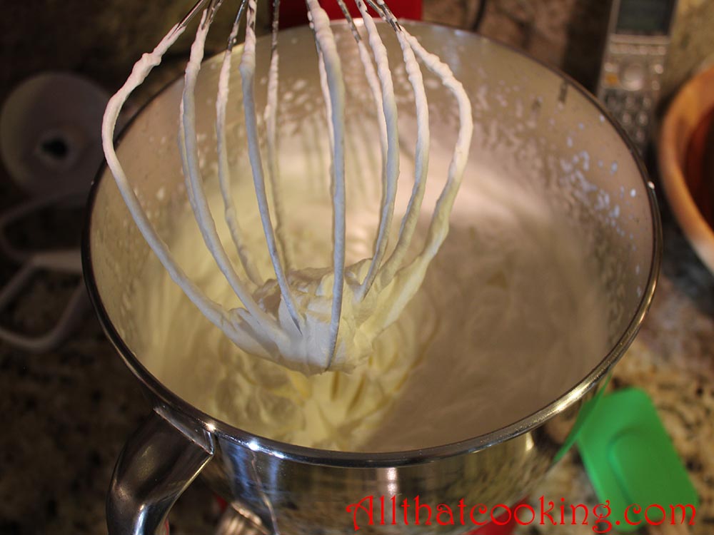 4. Pour cream into bowl of a stand mixer fitted with whisk. Whip until soft peaks form. Do not over whip. Transfer to chilled bowl and refrigerate until ready to use. Wash and thoroughly dry the mixer bowl.