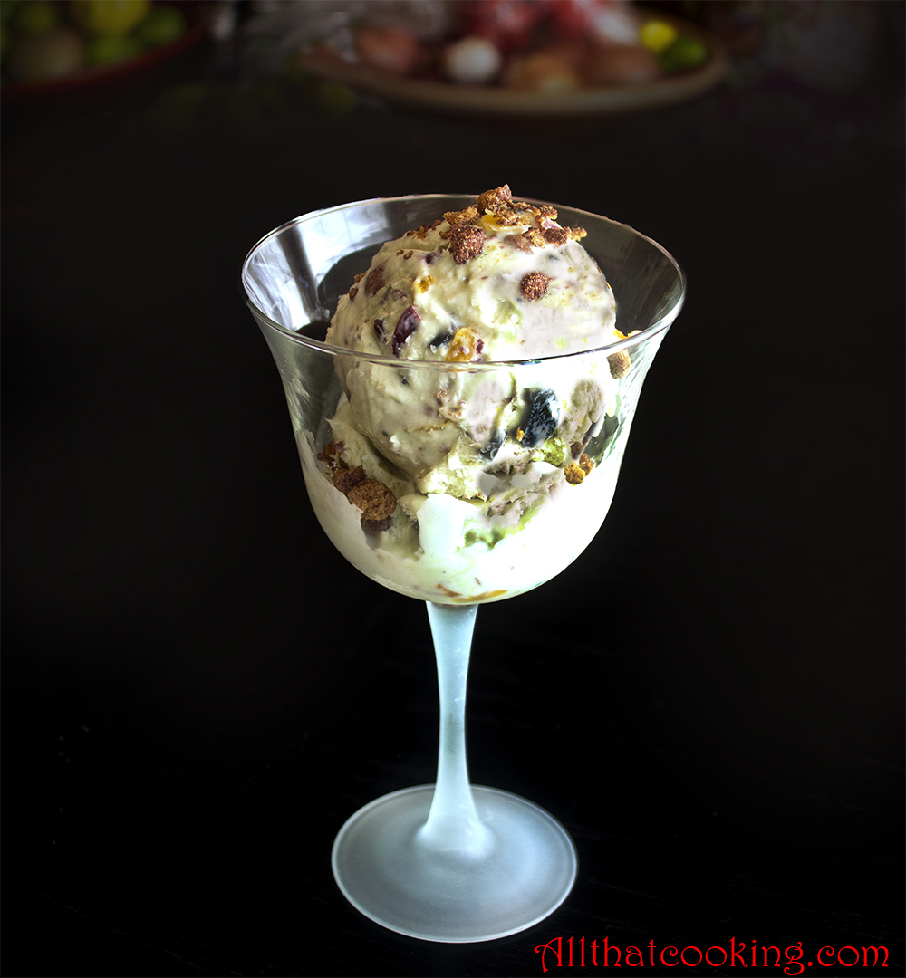 This was the best ice cream I have ever eaten! With the first bite everyone was praying out loud that there would be seconds. It’s rich, creamy, doesn’t scream licorice (good thing, because I’m not really a fan of black licorice). There are great chocolate bits from the Toblerone as well as a brilliant Coco Puff flavor and crunch. The dried fruits (healthy) add just the right amount of chewiness and there is really no kick from the vodka. I’m going to stop here, because just thinking about the ice cream makes it difficult for me to concentrate on writing.