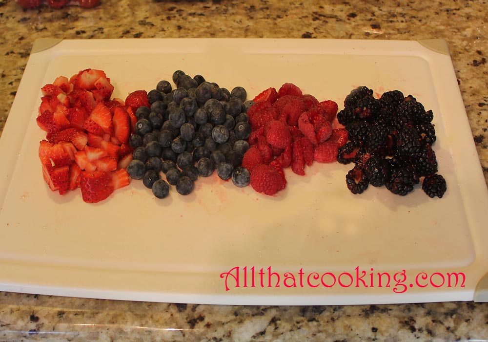 1 1/2 cups strawberries, cut to equal the size of the other berries