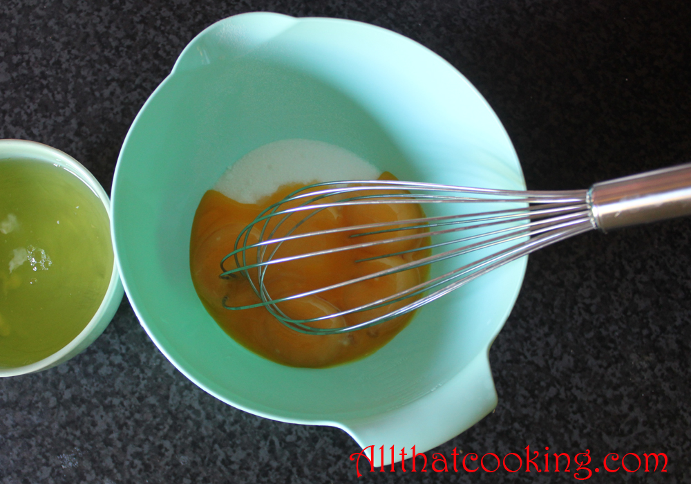 1. In a large bowl, whisk together egg yolks and 1 tablespoons of the sugar.  When combined, whisk in flour until smooth.  No clumps allowed!