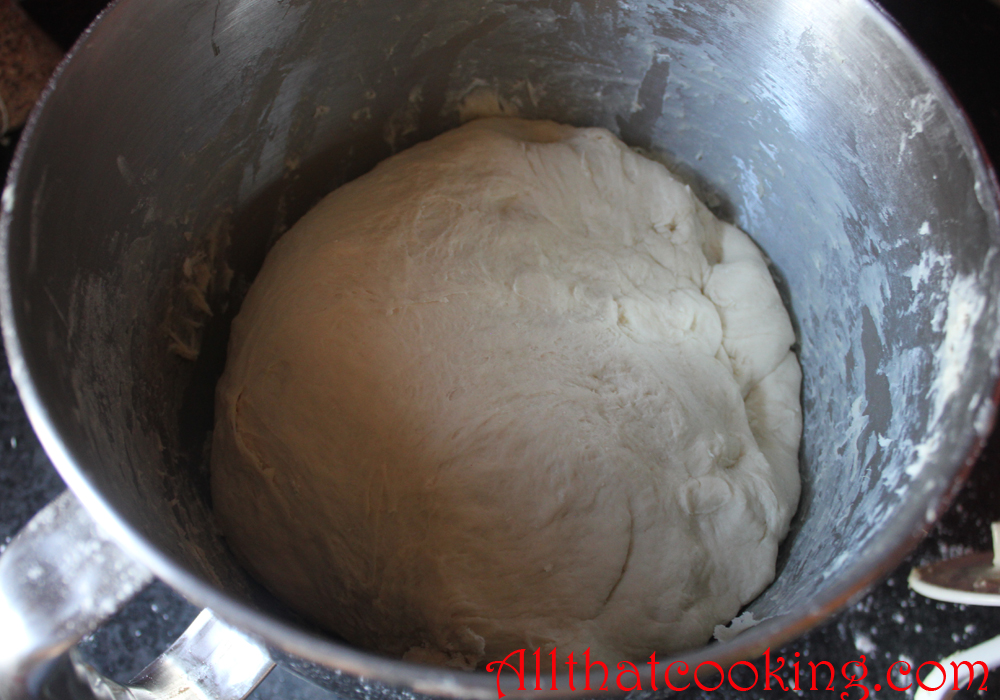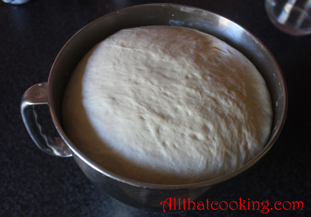 4.  Remove bowl from stand and cover with plastic wrap or damp cloth. Place in warm area until dough doubles in size.
