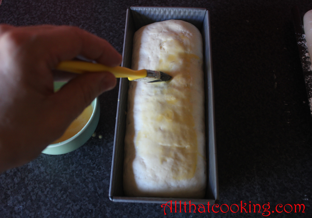 1.  Punch dough down and divide into equal portions.  Knead the divided doughs lightly, just enough to shape them the way you like or put into lightly greased loaf pans.