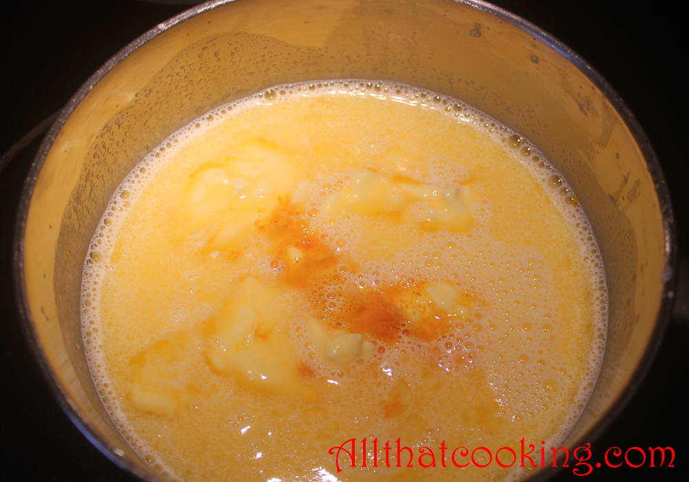 2. Heat one cup of the remaining milk in a medium saucepan over medium low heat. Stir in butter, sugar, salt and cardamom. When butter has melted pour in remaining milk as well as the saffron mixture.