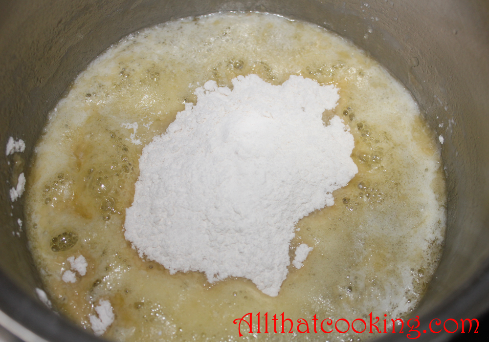 Gently whisk in flour and continue to whisk until there are no clumps.