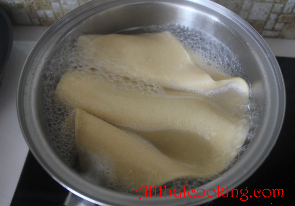 Place one strip of pasta in the boiling water and cook for 4 minutes.