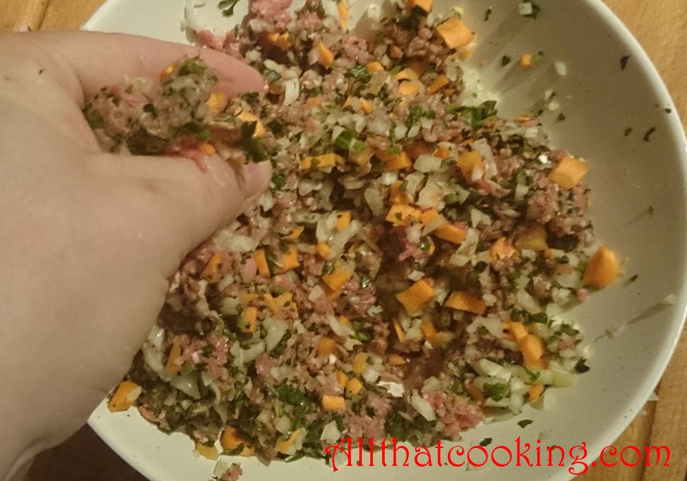 1. Mix meat, parsley, onion, carrot, salt and pepper together in a large bowl.