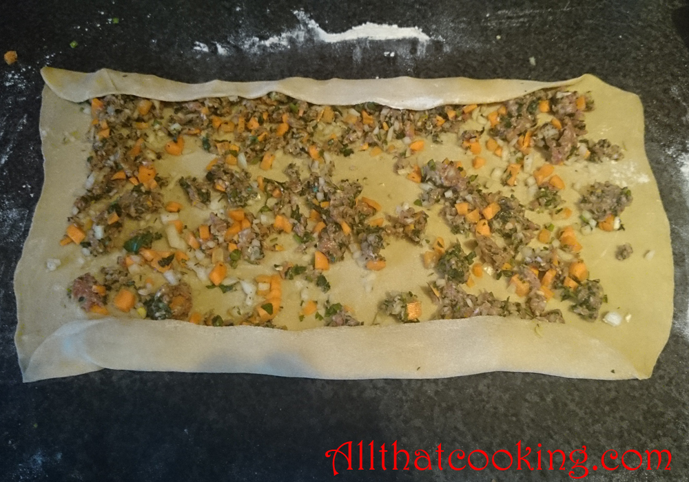 In Kyrgyzstan the filling is usually mutton, onions and some sweet pumpkin. Oli’s version combines lamb (you could use beef as well), onions, and carrots for a touch of sweetness. Parsley brightens brightens the mix.