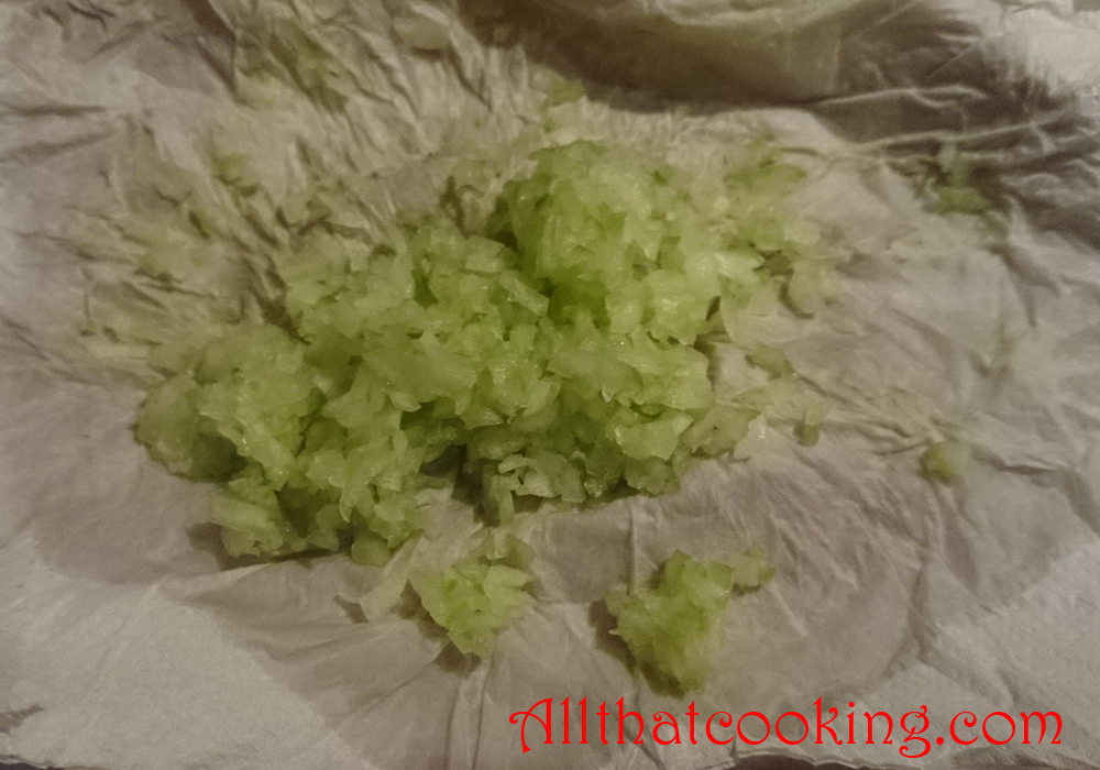 3. Place grated cucumber in cheesecloth or thin tea towel and squeeze out as much liquid as you can.