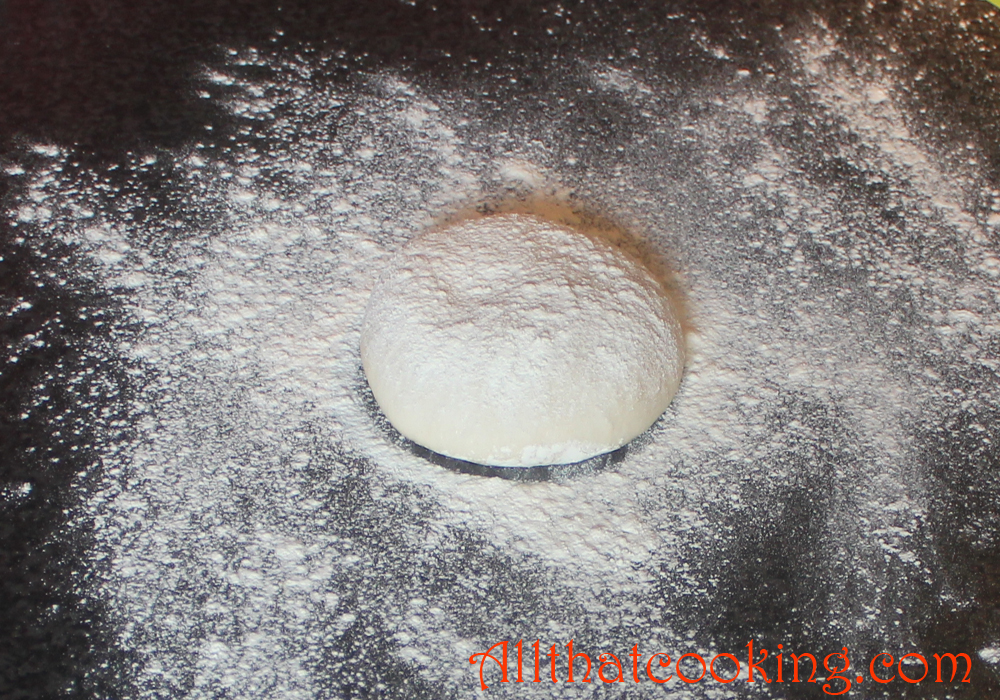 1.  Place one portion of dough on a floured surface and sprinkle dough with more flour.
