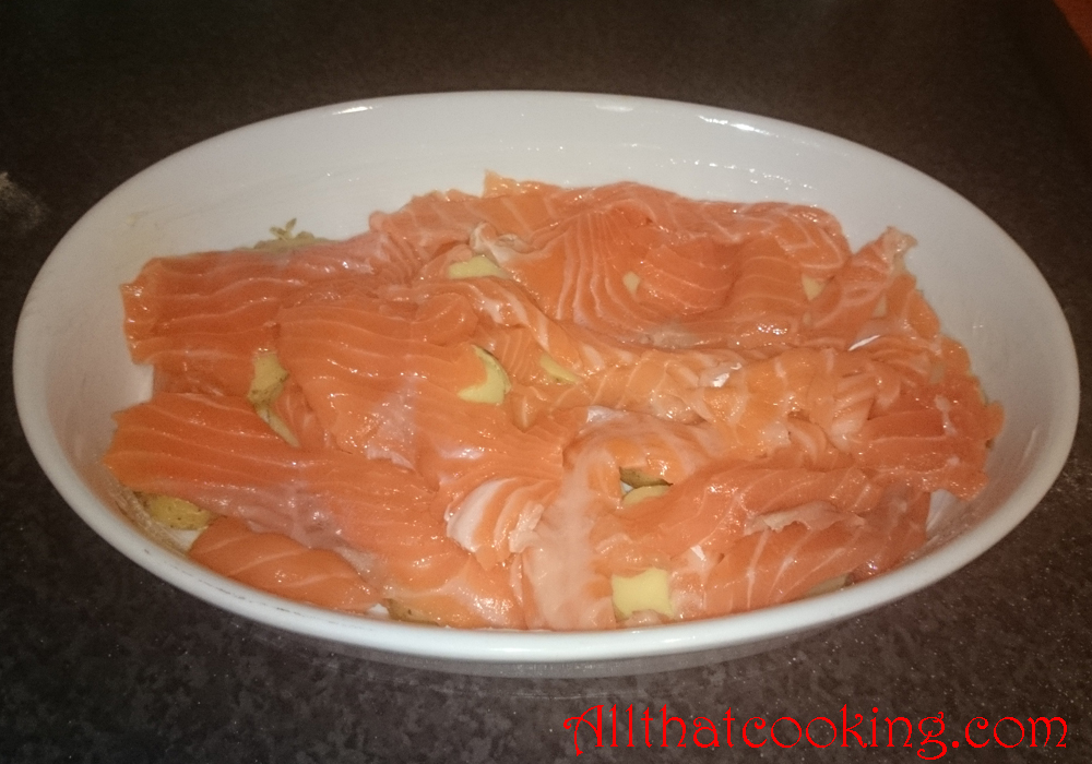 4.  Top with half of the salmon.