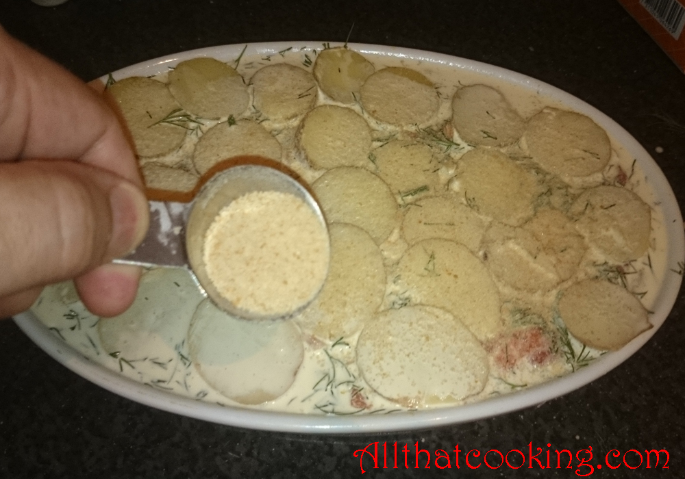 9.  If you are using bread crumbs now is the time to sprinkle them on top.