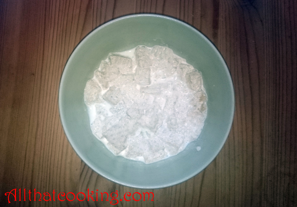 1. In a small bowl soak bread cubes in cream.