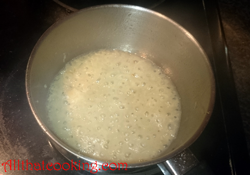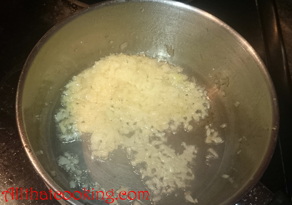 5. In a small sauce pan melt the butter over medium heat. Throw in onions and garlic. Cook, stirring often until translucent. Pour in vodka and cook until it’s reduced by half. Remove from heat and cool.