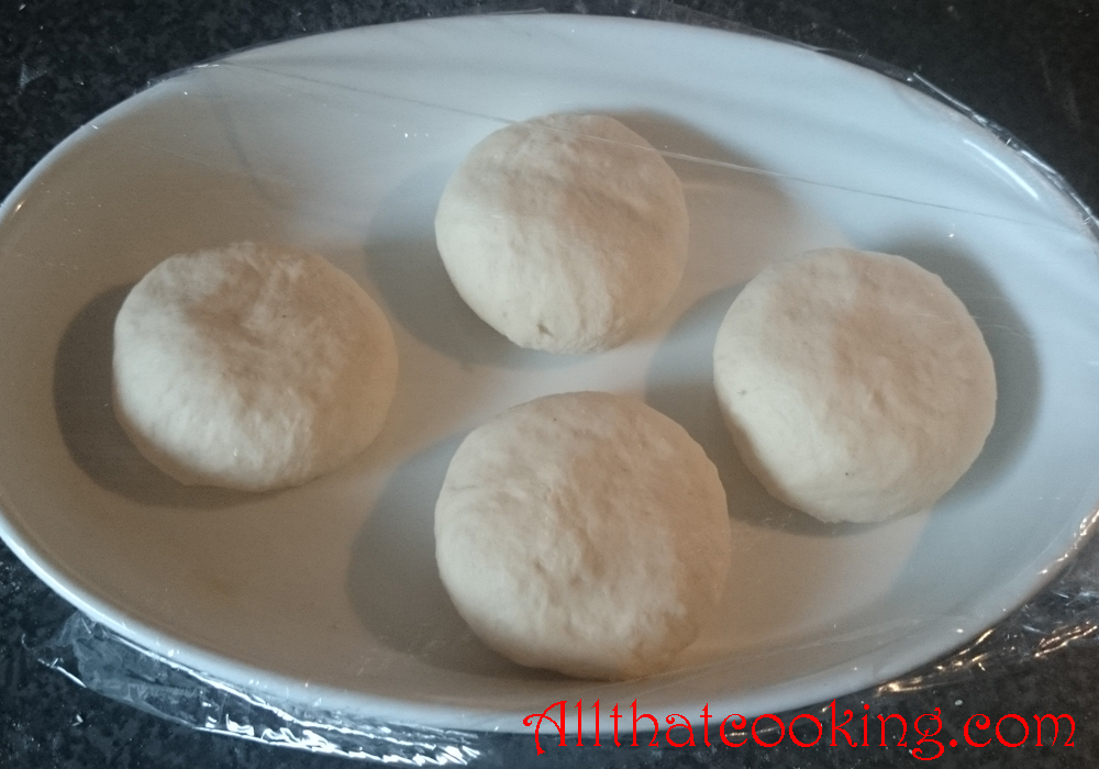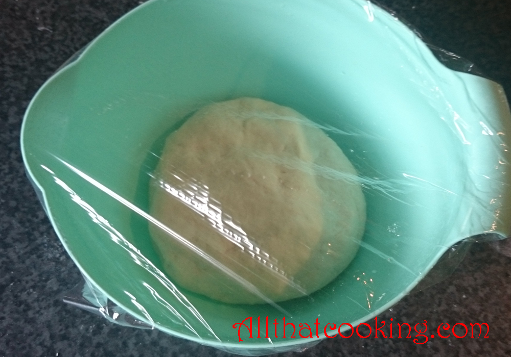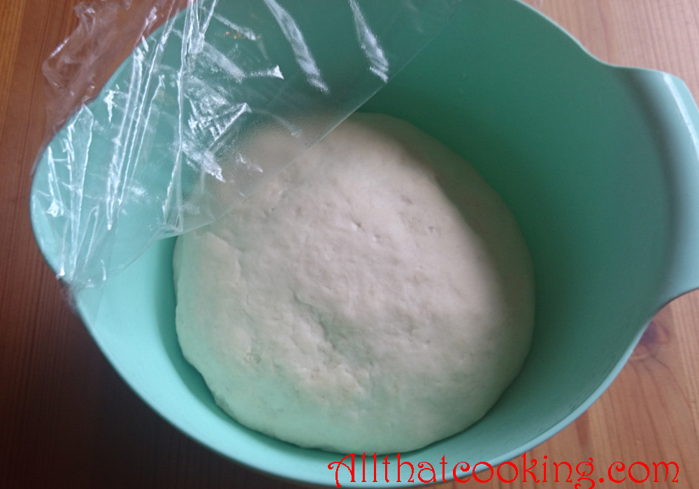 6.  Put dough ball in a bowl, cover with plastic wrap and leave at room temperature in draft free area until it doubles in size.