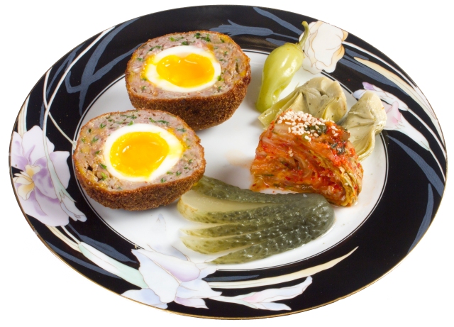 By the way, they have nothing to do with Scotland. Scotched is just another word for prepared. History has it that they were invented in the kitchen of a fancy London department store when wealthy carriage travelers needed a portable snack. Today you’ll find them on restaurant menus, in supermarkets, corner shops and of course pubs throughout Great Britain.