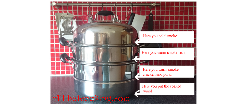This set up has one more flat steamer insert #4. It can be used as the top piece for cold smoking because you want the food to be as far away from direct heat as possible and to be smoked in a short period of time.