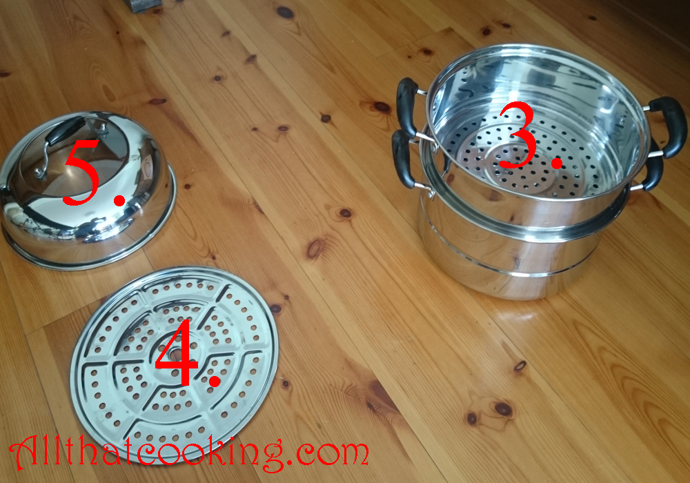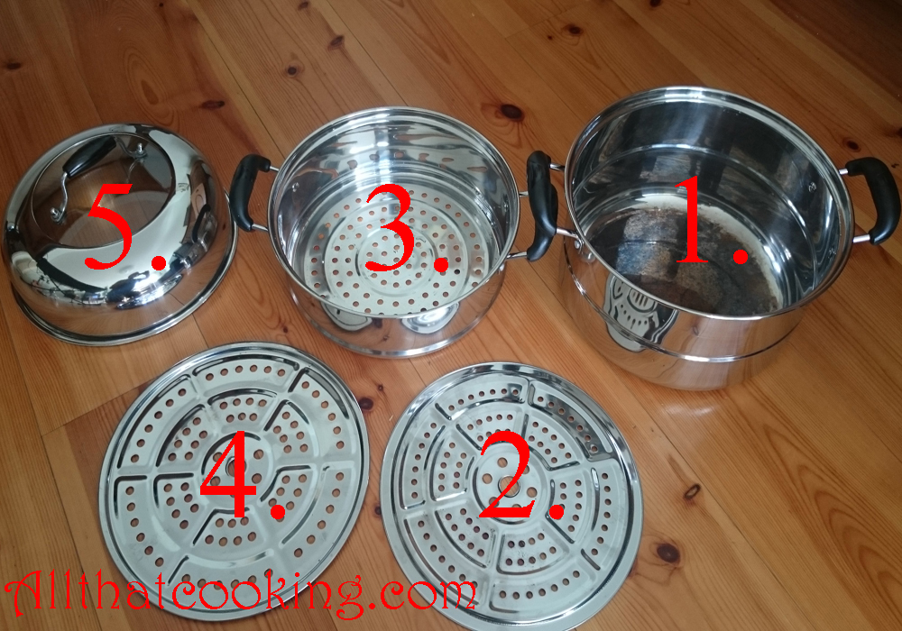 Here are all the parts of Oli’s smoker (steamer). #1 is the base pot. This is where you put the wood.